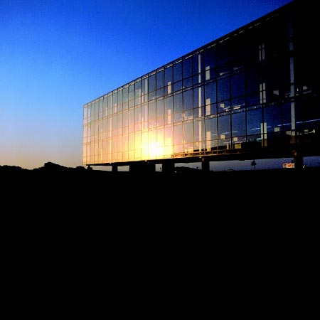 該建筑是一個(gè)浮動(dòng)的,半透明的,形狀為長(zhǎng)方形,是輕與重之間的平衡。
