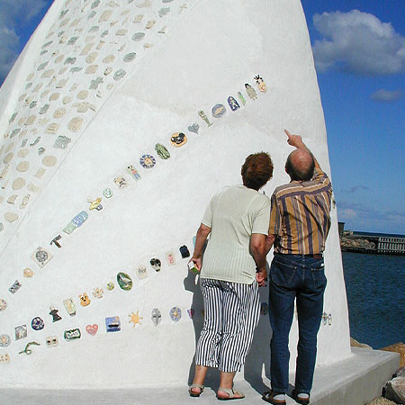 雕塑的防護通過近900位孩子們幫助雕塑師來完成。每個孩子在雕塑中加入了一個小的陶瓷或玻璃圖形。有的在衣服上,有的在身體上,就像美人魚的鱗片。