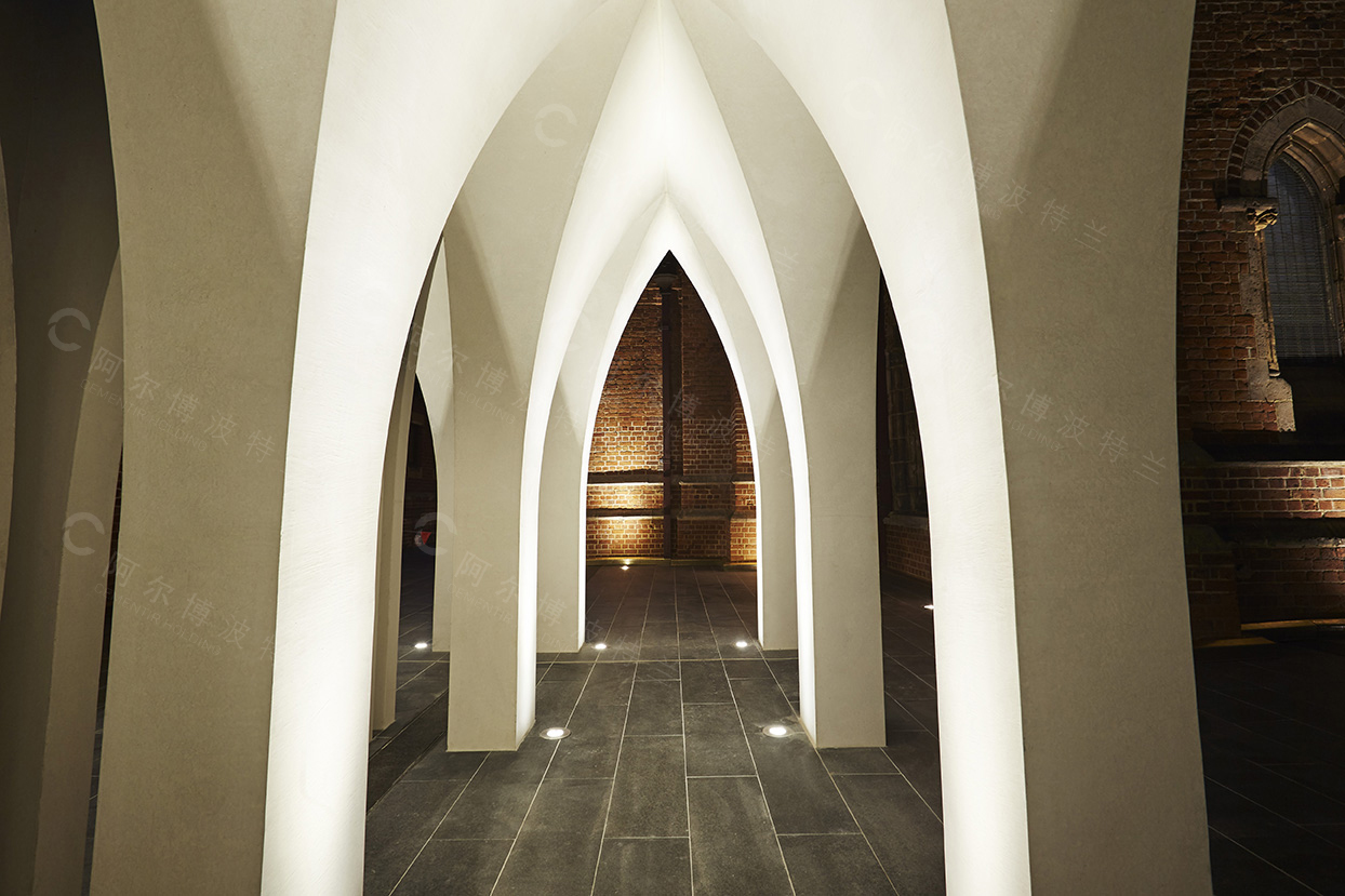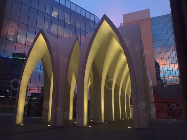 項(xiàng)目的靈感來源于大教堂的柳葉刀型窗戶,其引人注目的白色預(yù)制混凝土外墻通體使用阿爾博白水泥。預(yù)制構(gòu)件是由阿德萊德SA Precast公司研發(fā)生產(chǎn),包括輕微紋理狀白色混凝土曲線梁的排練室、尖塔、格子狀的墻板,U形柱支撐的白色混凝土預(yù)制板的拱門從一樓延續(xù)到二樓形成廊柱。